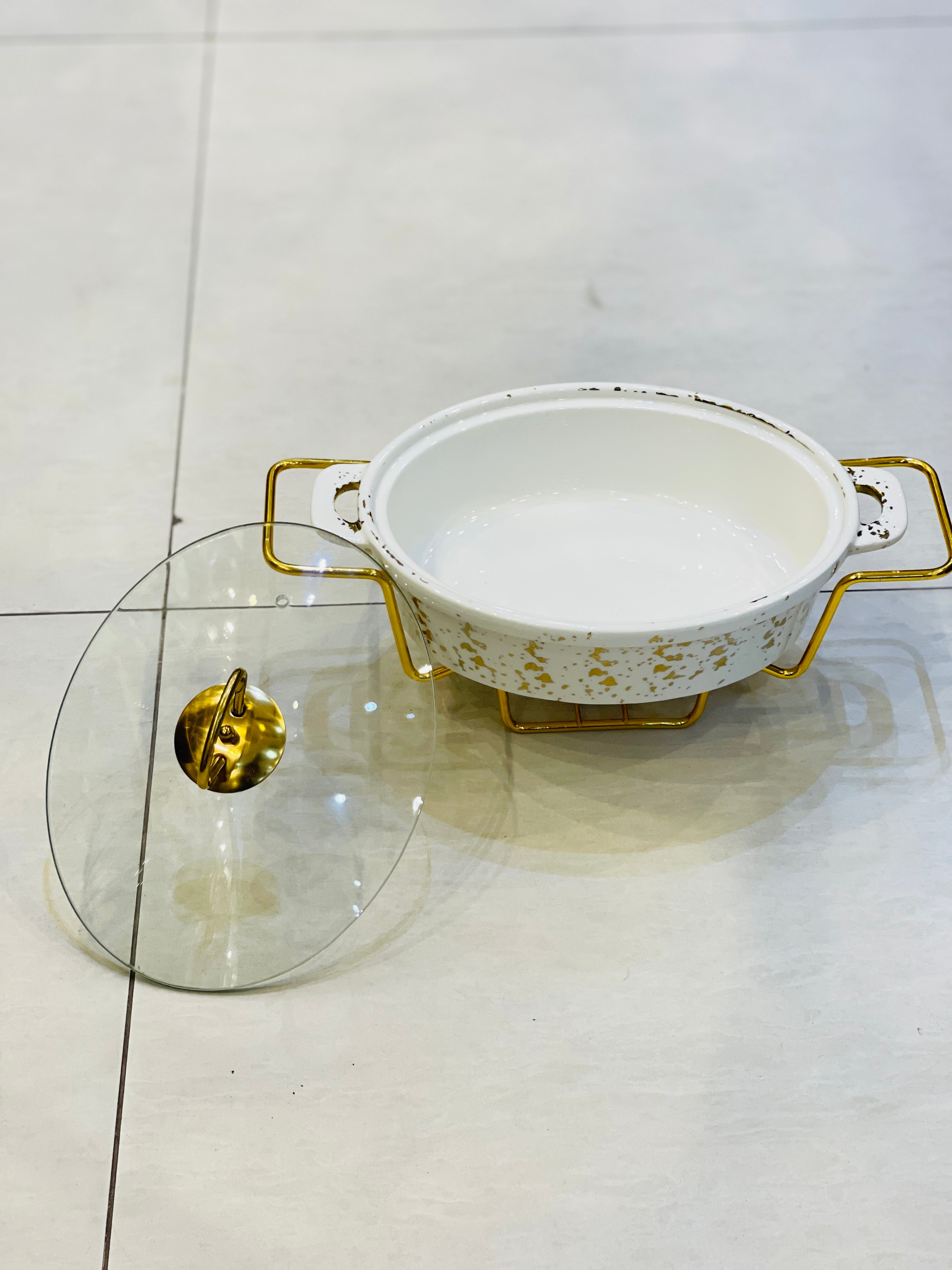 These elegant buffet dishes come in a set of 3 with a sturdy metal stand for serving dinners. Made of high-quality ceramic, they add a touch of class to any dinner setting. Display your delicious creations with style and convenience.