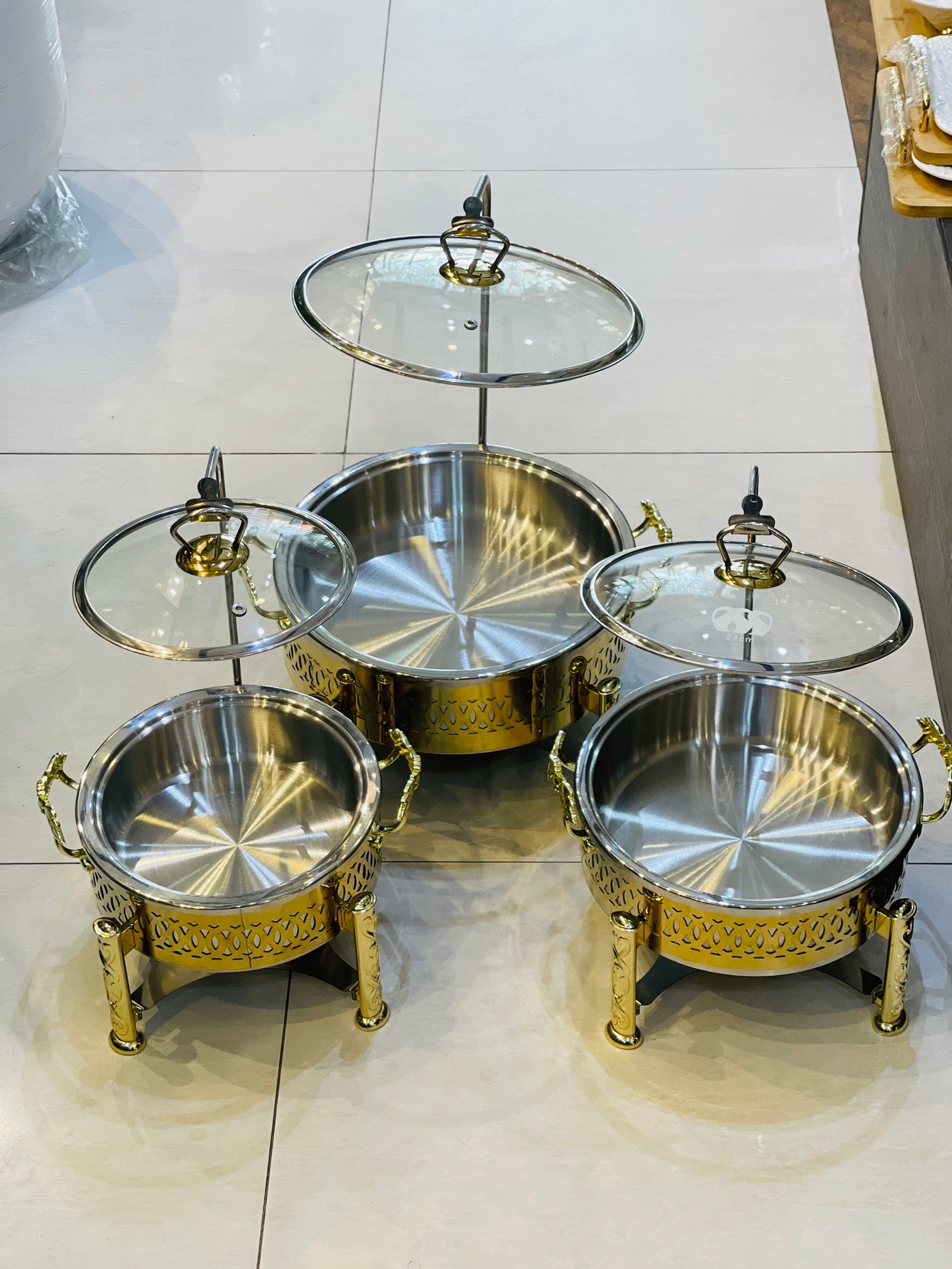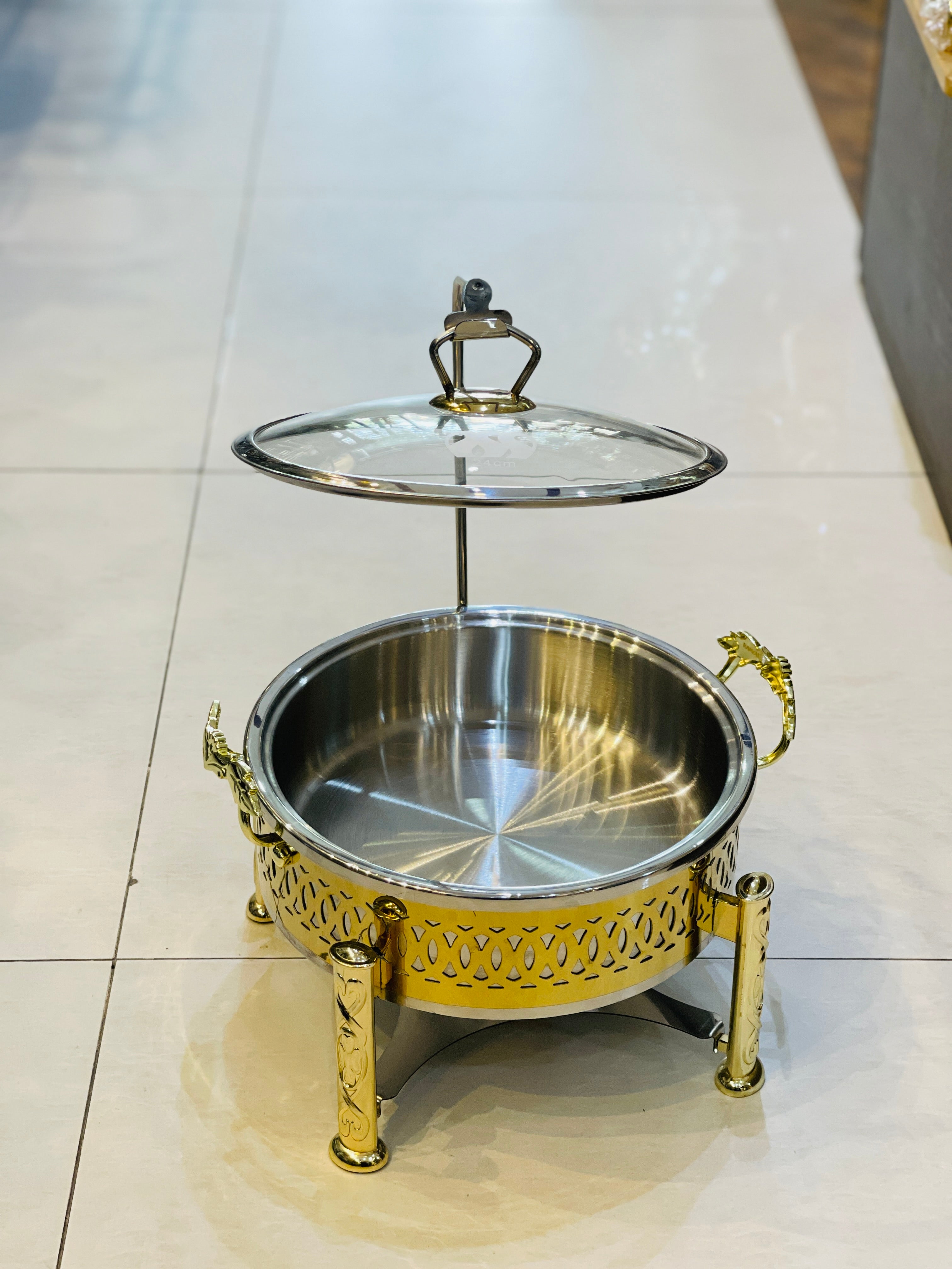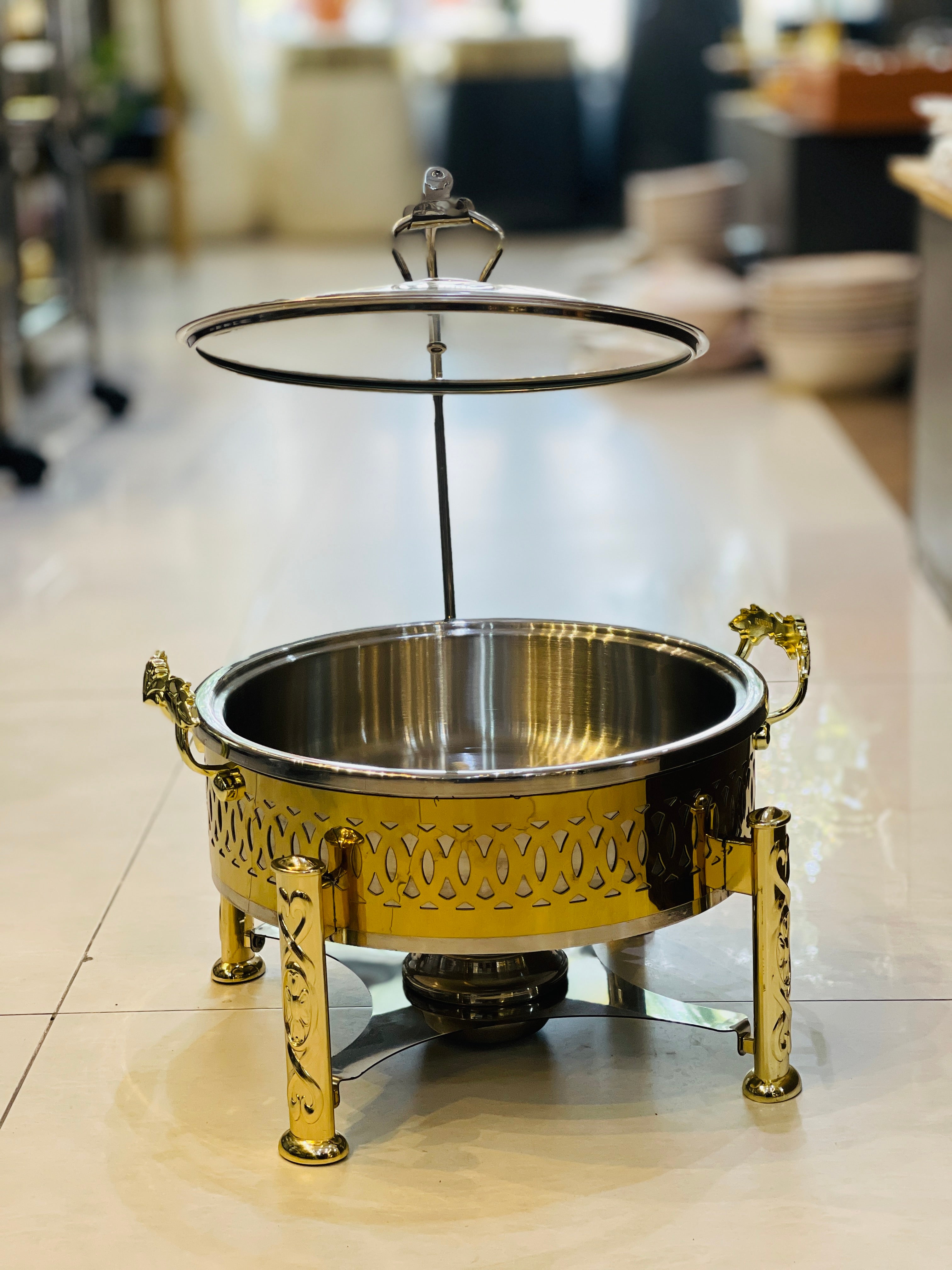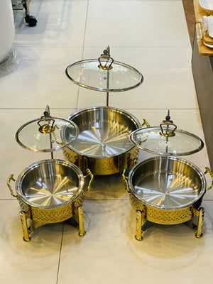 Crafted from durable stainless steel, these buffet dishes are coated in a golden electrolyte for a touch of elegance. Perfect for hosting events or catering, these dishes offer both style and functionality.
