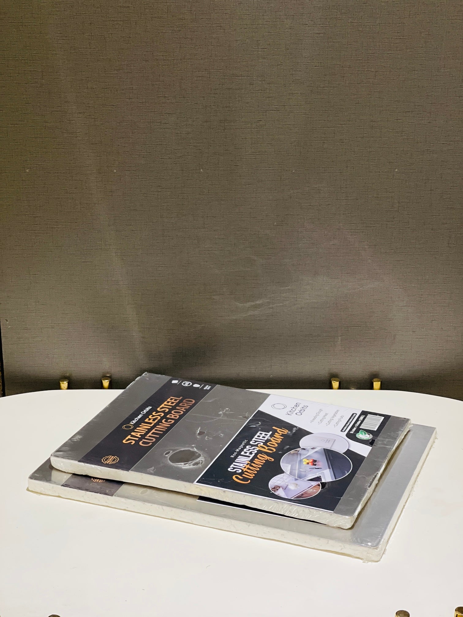 This stainless steel cutting board is the perfect addition to any kitchen. Its durable material ensures longevity and its design allows for easy placement on shelves for accessibility. Improve your cooking experience with this essential tool.