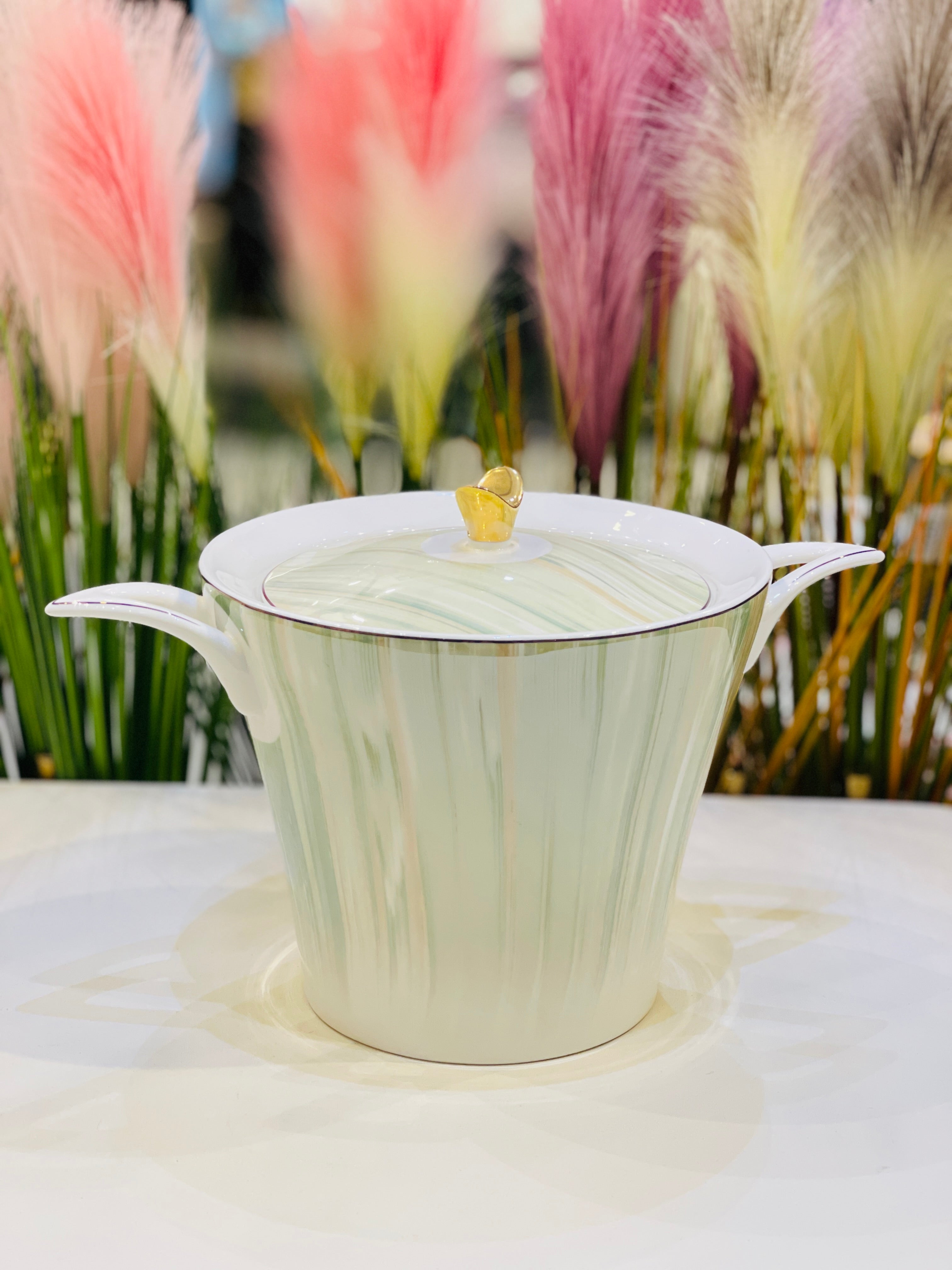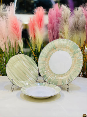 Upgrade your dining experience with the Dinner Set Super Bon. This high-quality, gold-plated set serves 8 people with 61 pieces, perfect for hosting a dinner party. Elevate your table setting and impress your guests with this elegant and durable dinnerware.