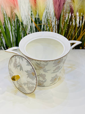 Upgrade your dining experience with the Dinner Set Super Bon. This high-quality, gold-plated set serves 8 people with 61 pieces, perfect for hosting a dinner party. Elevate your table setting and impress your guests with this elegant and durable dinnerware.