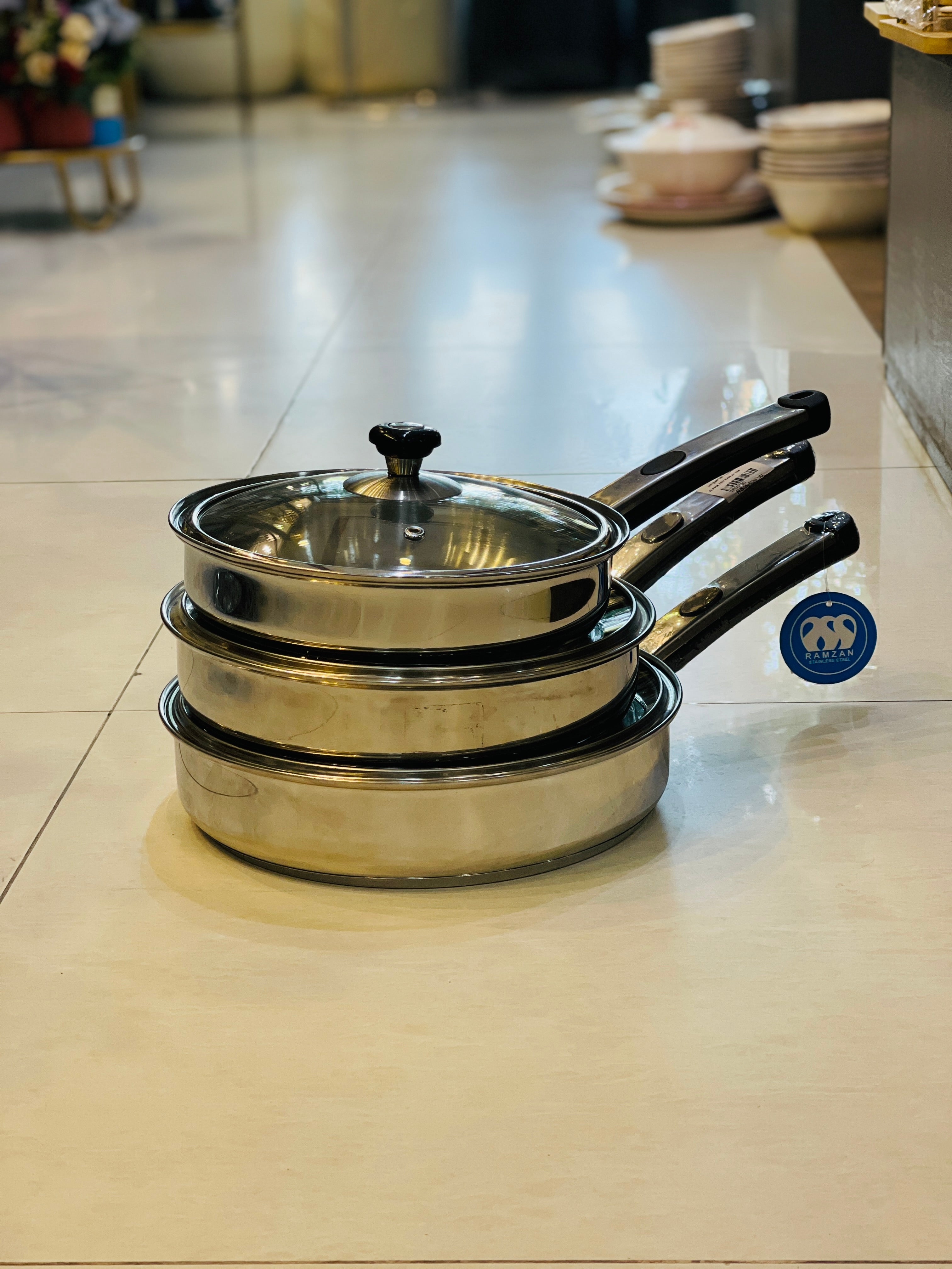 We present the Fry Pan Stainless Steel. Made with double base, it ensures evenly cooked dishes with every use. Its durable material allows for long-lasting performance, making it a valuable addition to any kitchen.