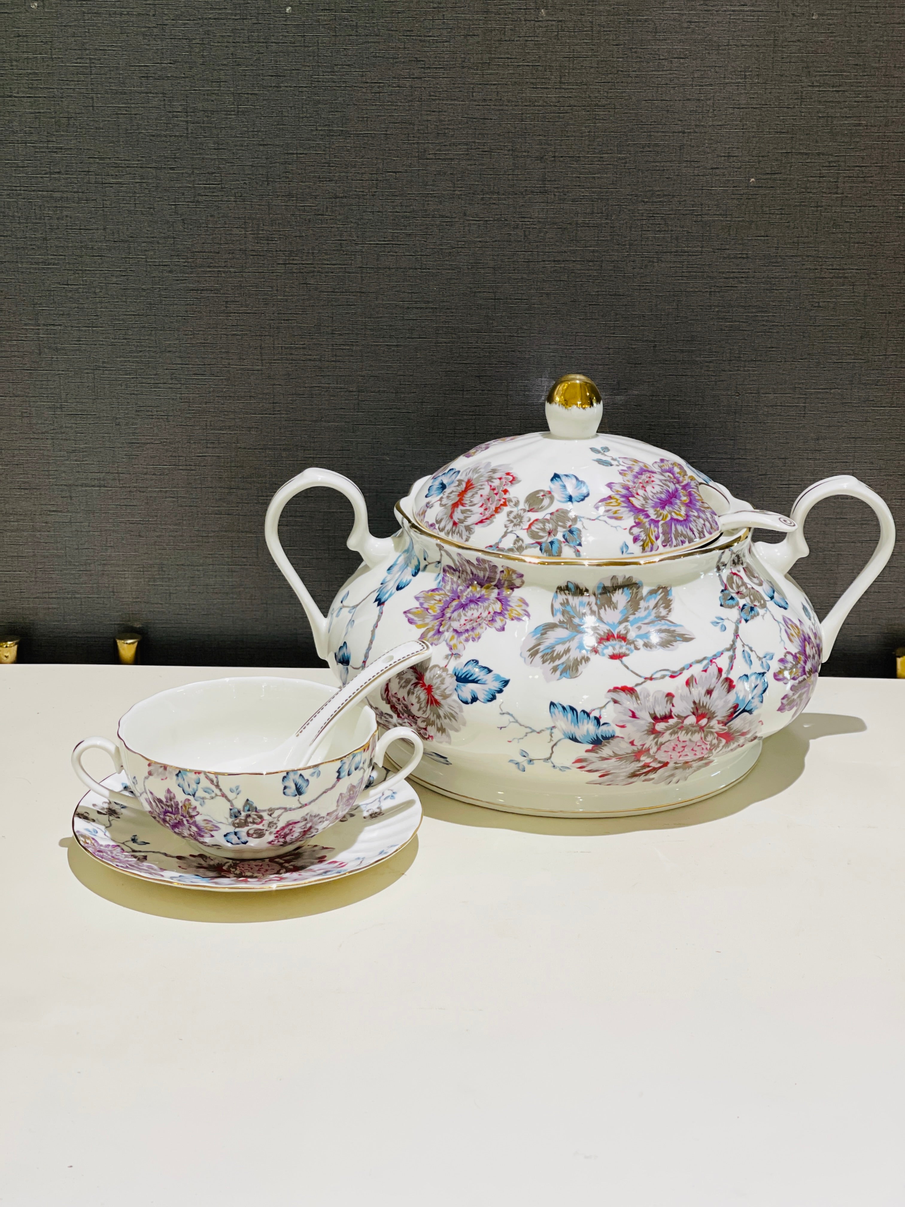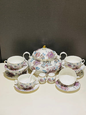 Upgrade your dining experience with our Soup Set Super Bon. Made from high-quality super bon material, this elegant set features a beautiful floral design that adds a touch of sophistication to your table. Indulge in delicious soups while impressing your guests with this premium soup set.