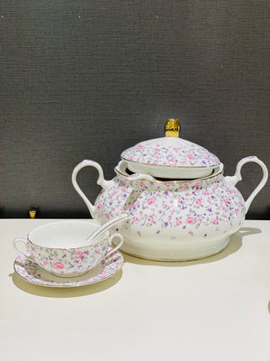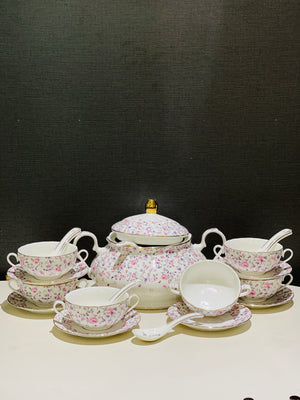 Upgrade your dining experience with our Soup Set Super Bon. Made from high-quality super bon material, this elegant set features a beautiful floral design that adds a touch of sophistication to your table. Indulge in delicious soups while impressing your guests with this premium soup set.
