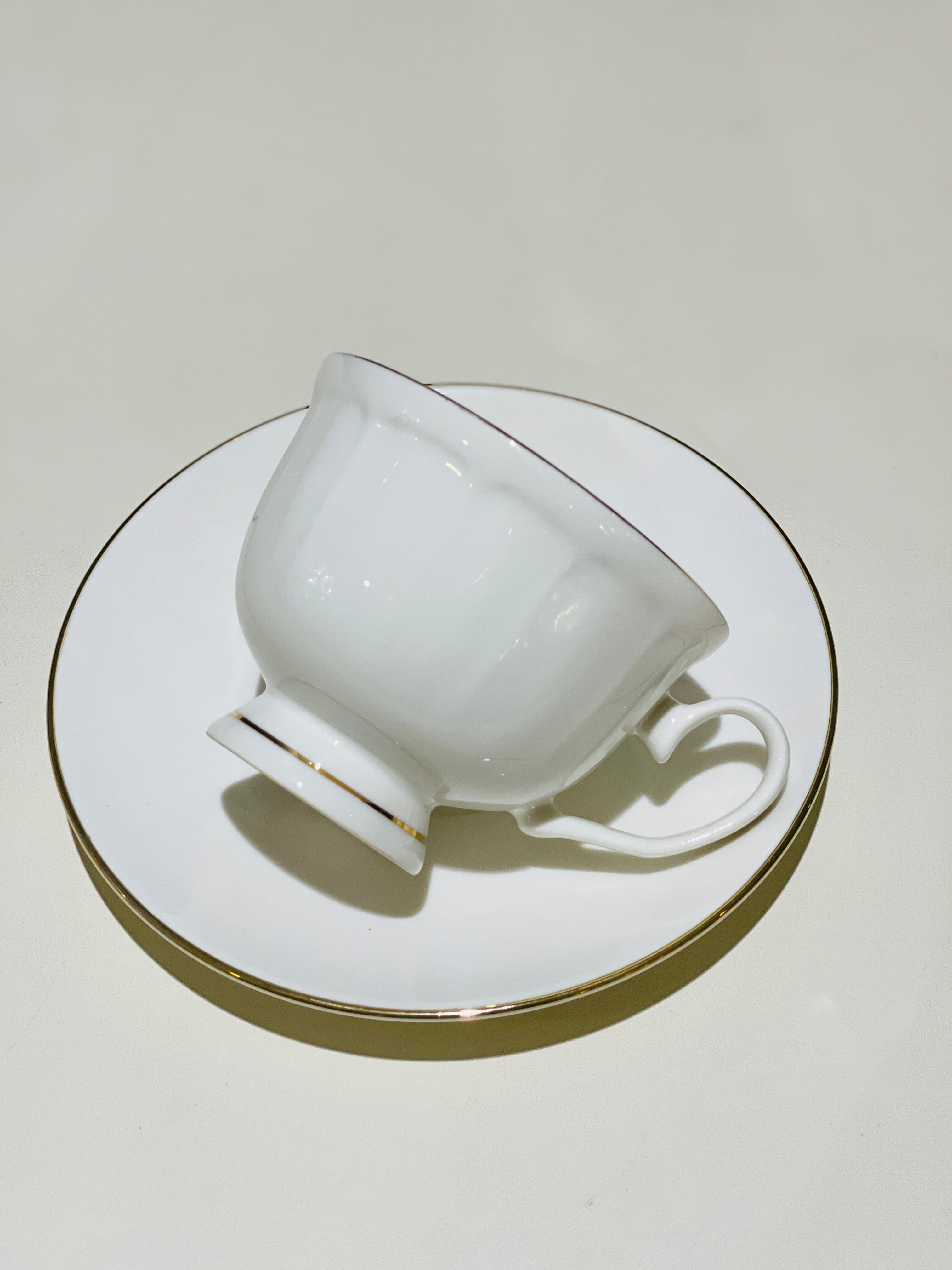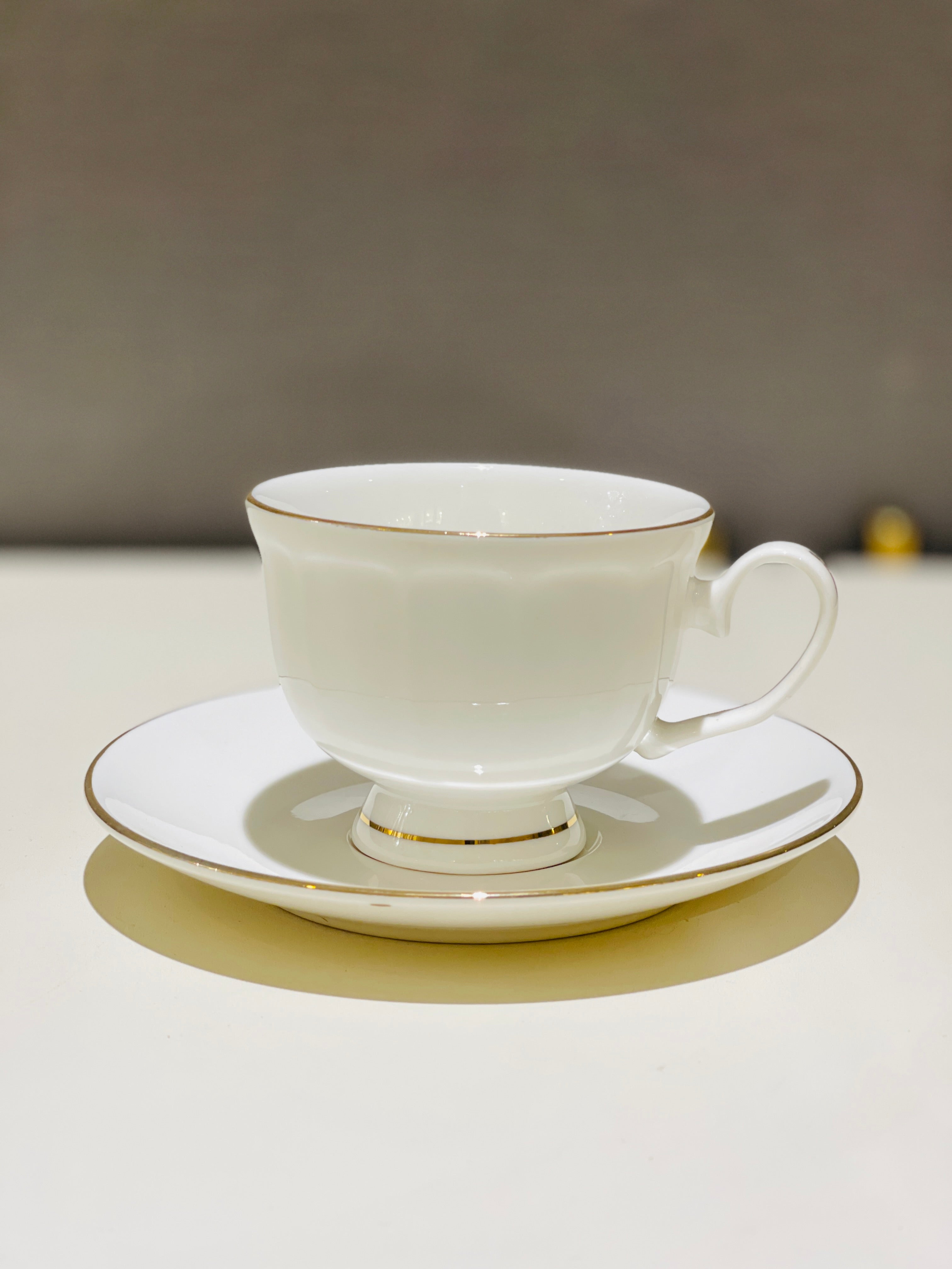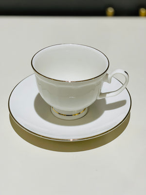 This exquisite 24-piece Tea Set features a golden border design on high-quality Bon china. Expertly crafted, this set adds elegance and sophistication to any tea party or gathering. Create the perfect ambiance and impress your guests with this timeless tea set.