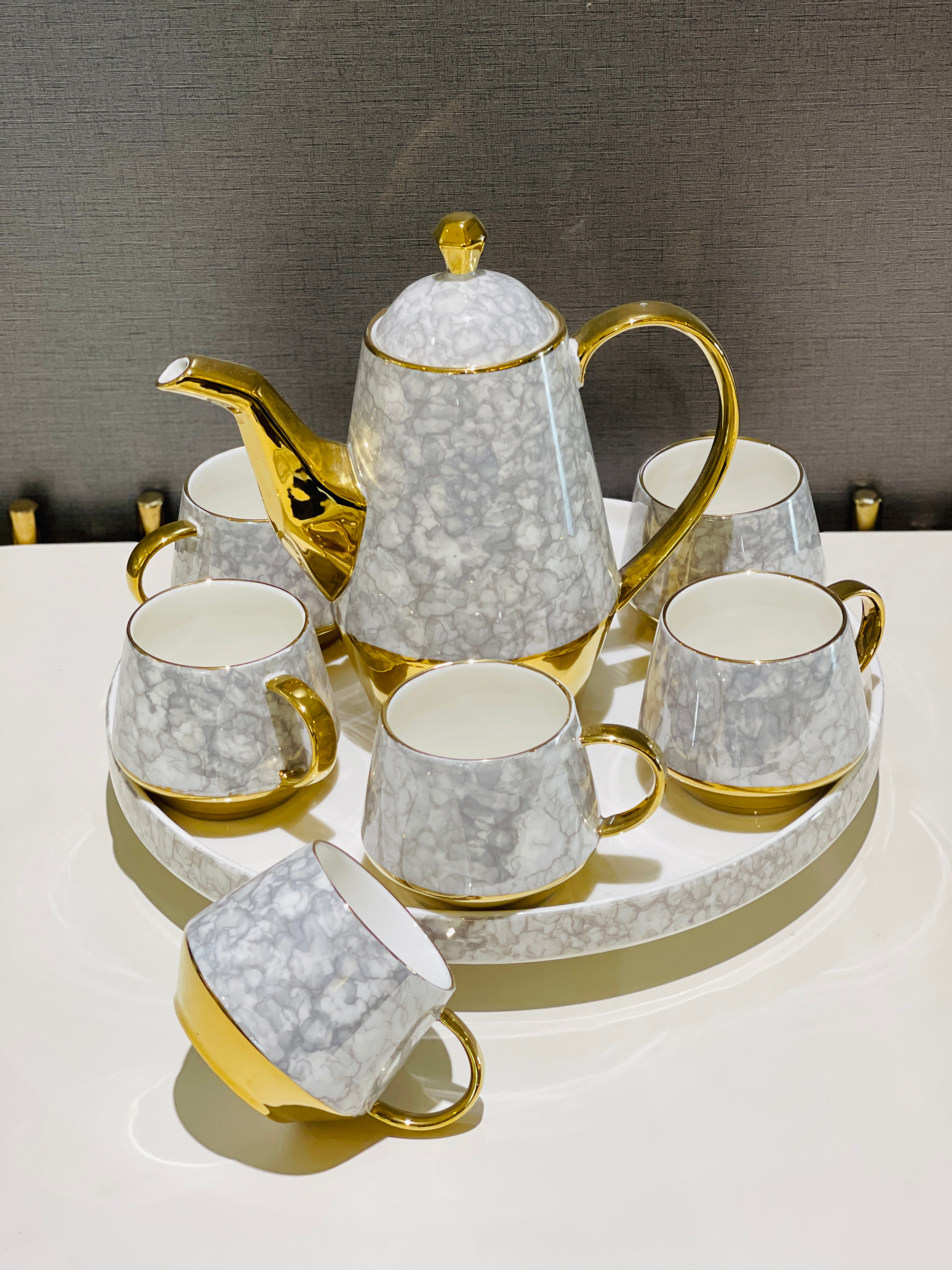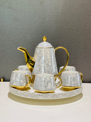 Experience the convenience and elegance of our Tea Set Revolving Tray. Made from high-quality ceramic material, this tray features a sophisticated grey abstract design and a revolving feature for easy access to your tea essentials. Elevate your tea time experience with this stylish addition to your home.