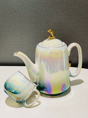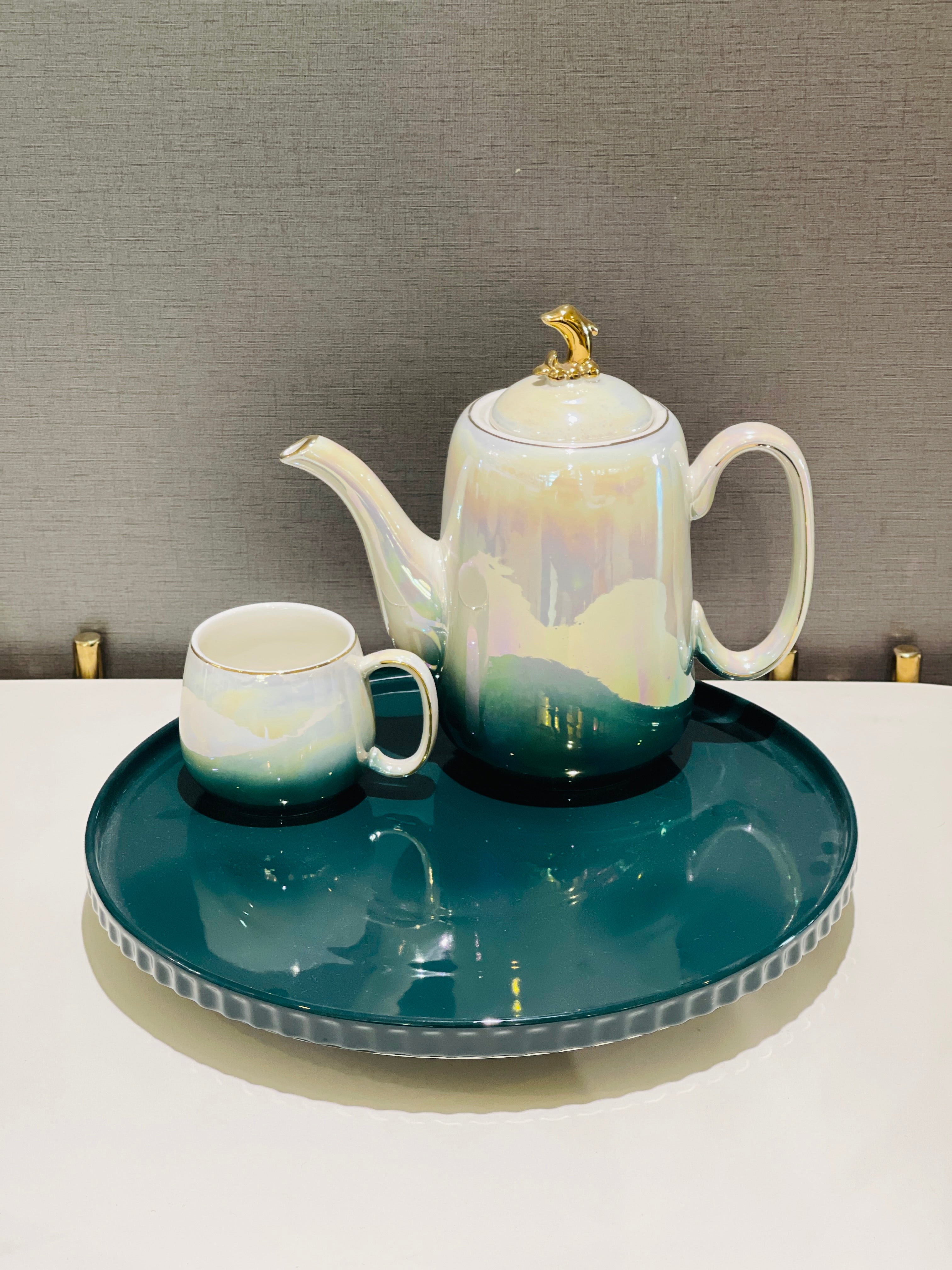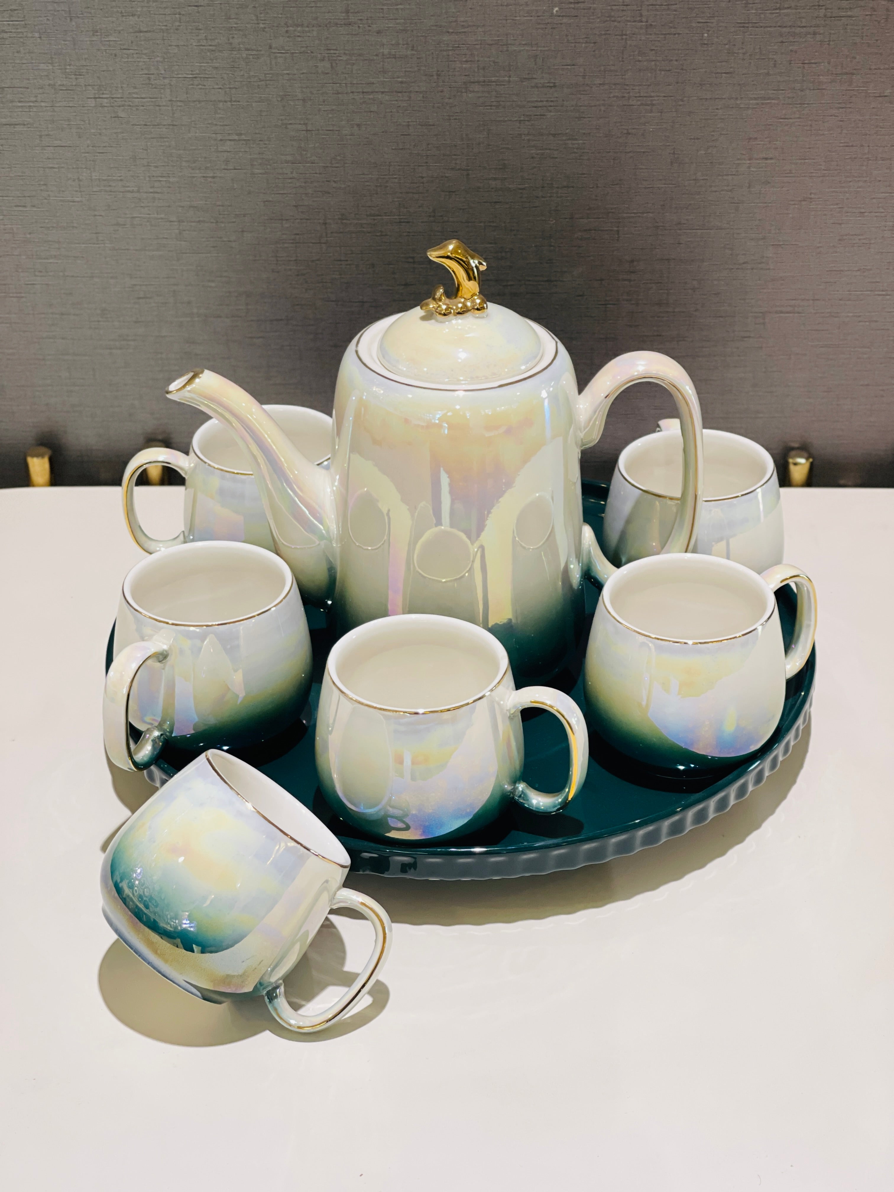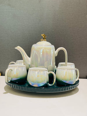 This elegant revolving tray tea set features an abstract design, making it a unique and visually appealing addition to any tea collection. The rotating tray allows for easy access and serving of teas, while adding a touch of sophistication to tea time. Perfect for entertaining or everyday use.