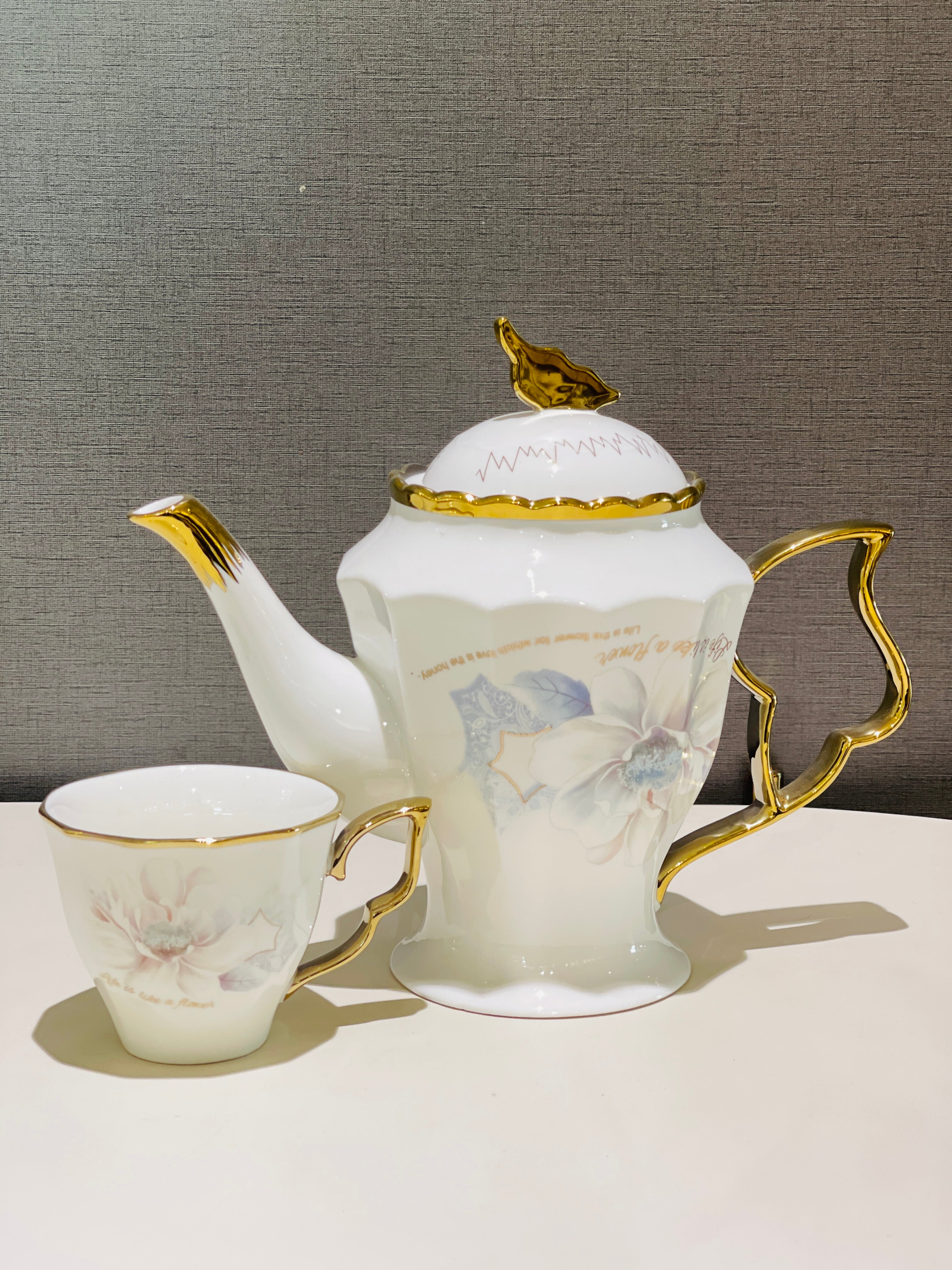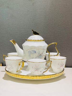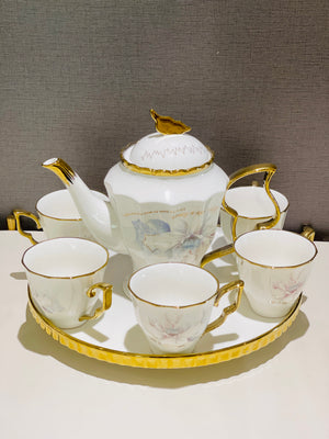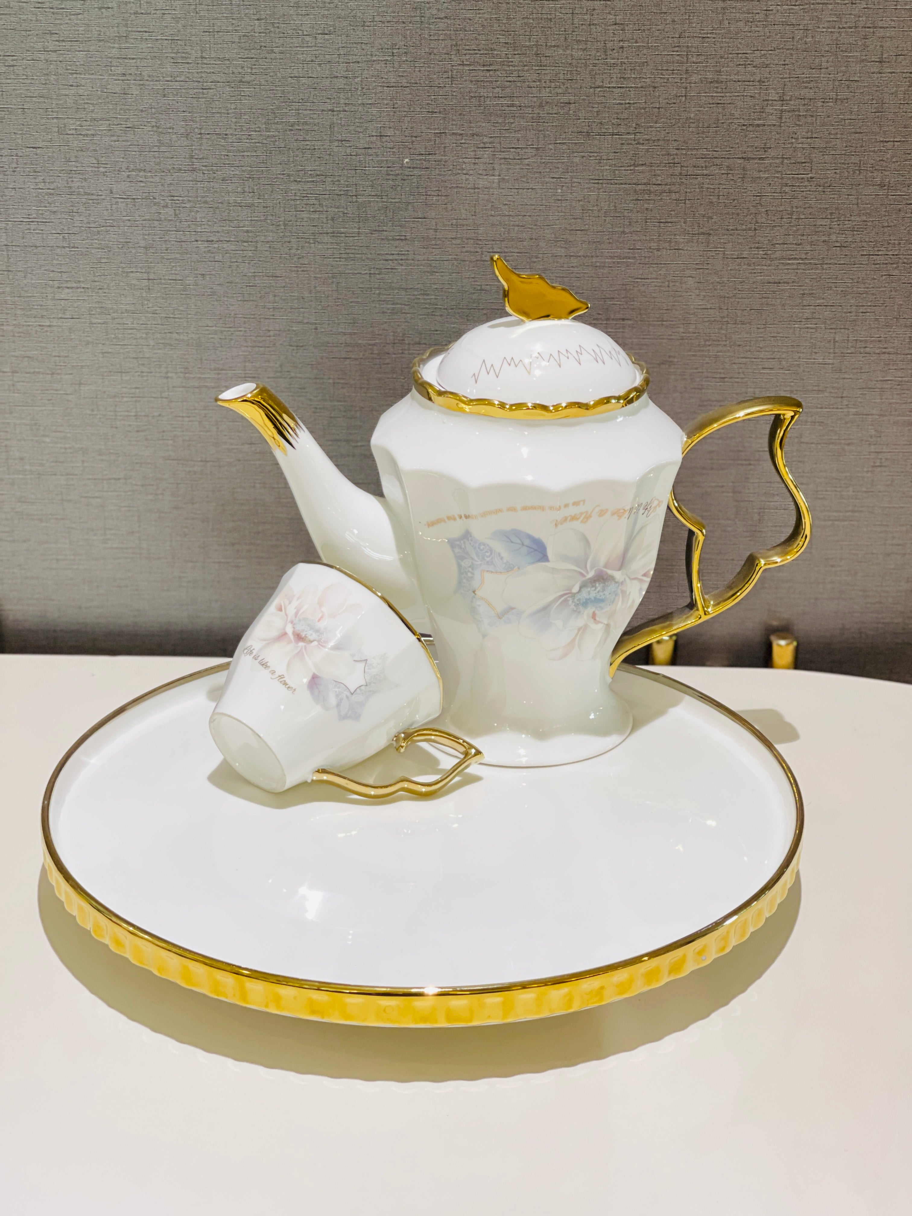 Effortlessly serve tea with our Tea Set Revolving Tray. Made from high-quality ceramic, this elegant tray features a beautiful floral design and rotates for convenient access. Impress your guests and elevate your tea serving experience.