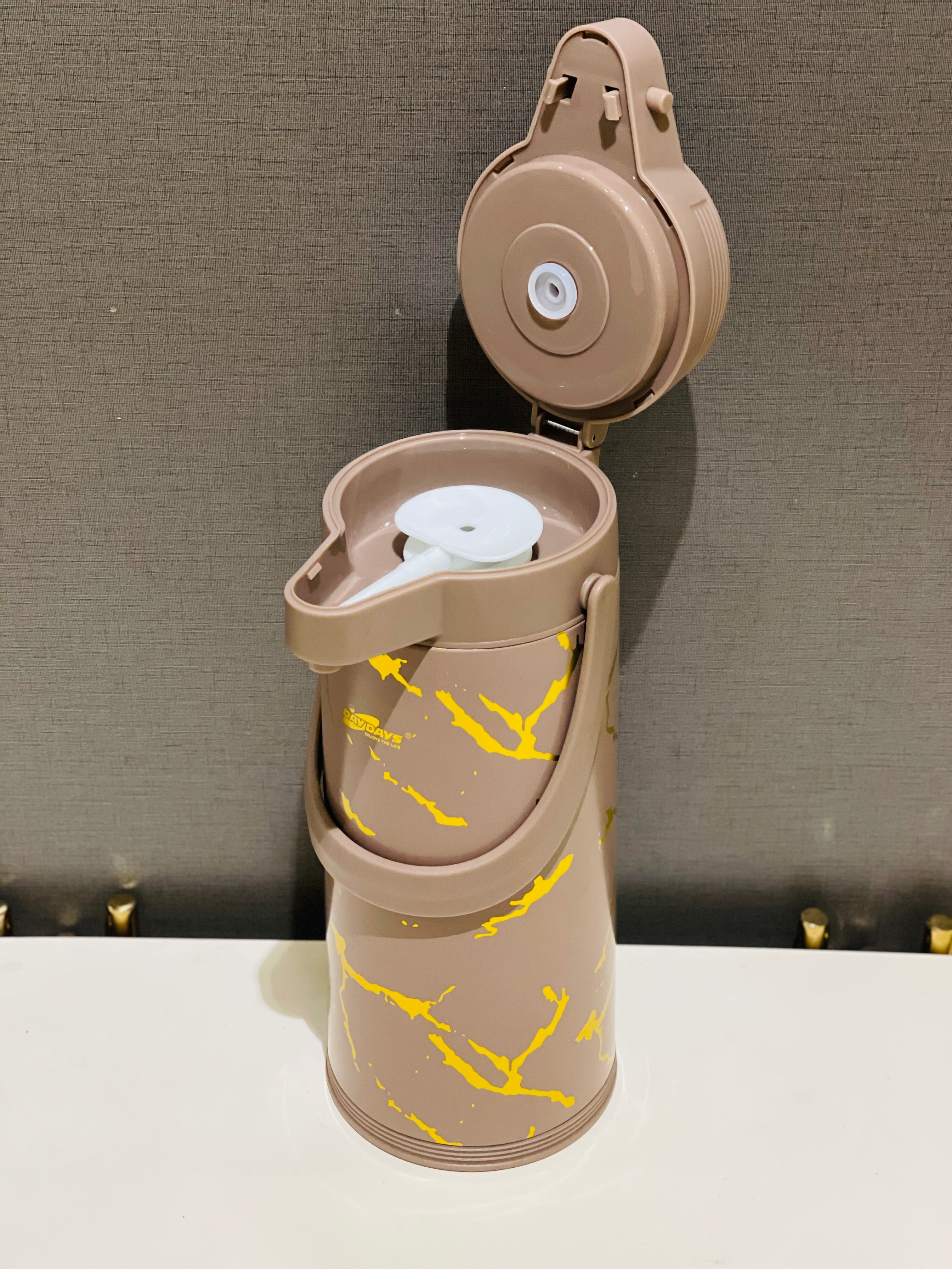 Experience hot or cold drinks on the go with the Thermose 1.9 LTR. Its elegant design and inner glass body provide durability and style. Keep beverages at the perfect temperature for longer, making it the perfect companion for any adventure