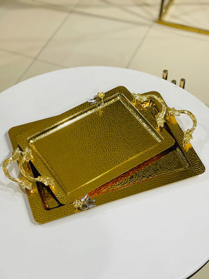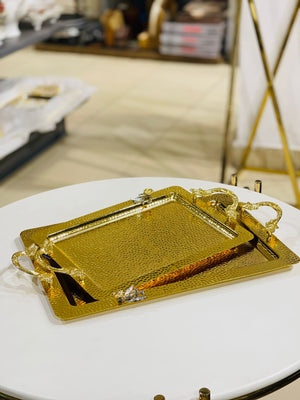 This 2-piece tray set is crafted from durable stainless steel, ensuring long-lasting use and an easy-to-clean surface. Ideal for serving or organizing, each tray combines functionality with a sleek, modern look. Available in sets of three, this elegant collection enhances any dining or presentation experience. it offers both quality and value for your home or professional setting.