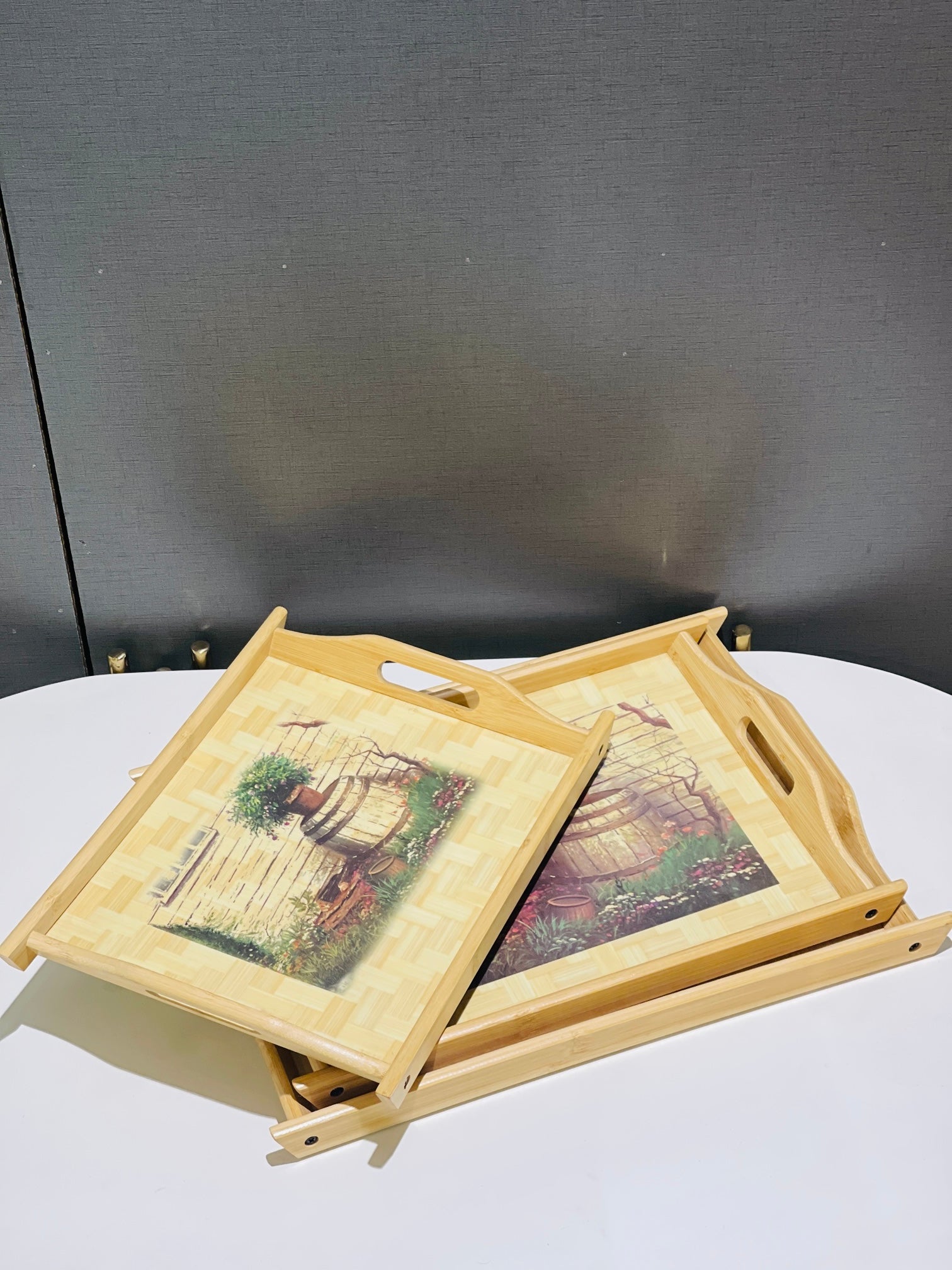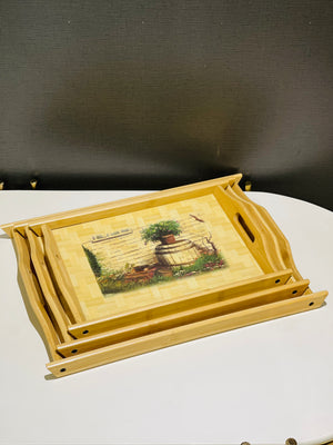 Introducing our Tray Set Wood, expertly crafted with a naturalistic design that adds a touch of elegance to your home. Made with washable materials for easy maintenance. Includes 3 pieces for versatile use. Elevate your decor with this functional and stylish tray set.