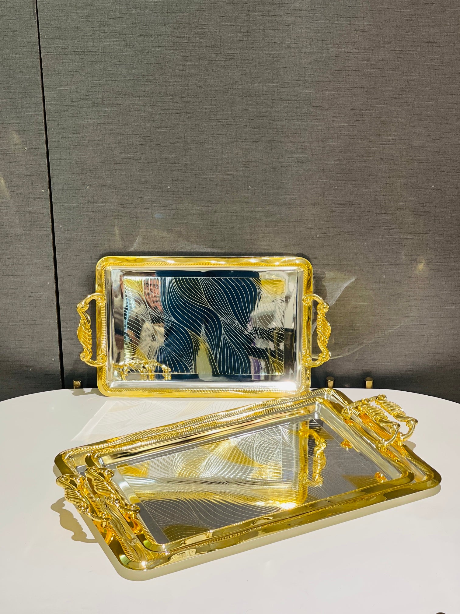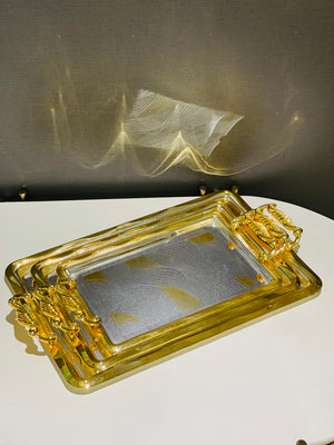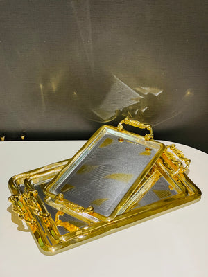Crafted from durable stainless steel with a golden electrolyte finish, this Tray Set is not only rust-proof but also adds a touch of elegance to any table setting. Perfect for serving appetizers, desserts, and more, these trays offer both style and functionality. Upgrade your hosting game with this set.