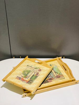 Introducing our Tray Set Wood, expertly crafted with a naturalistic design that adds a touch of elegance to your home. Made with washable materials for easy maintenance. Includes 3 pieces for versatile use. Elevate your decor with this functional and stylish tray set.