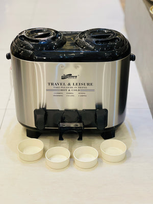 Satisfy your thirst with the Water Cooler 2 in 1. Made with durable stainless steel, it can hold up to 6 liters of hot or cold beverages in each side. Stay hydrated and refreshed with this convenient and sleek design. Perfect for any home or office setting.