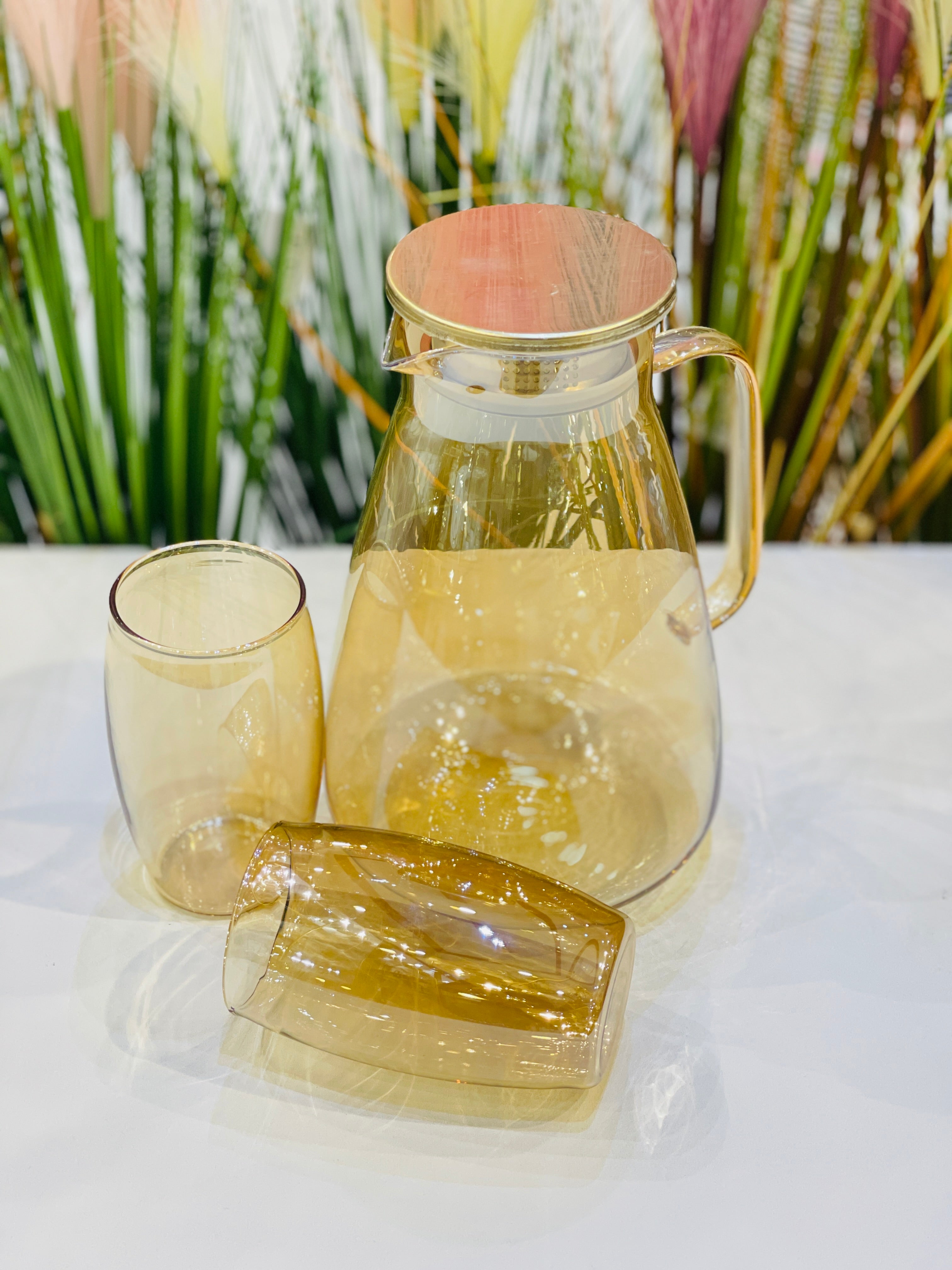 This Water Set Glass is a versatile and durable set, consisting of 7 pieces with steel lids. Its light weight design makes it practical for everyday use, while its steel lids provide a secure seal for freshness. A perfect addition to any kitchen for serving and storing water or other beverages.